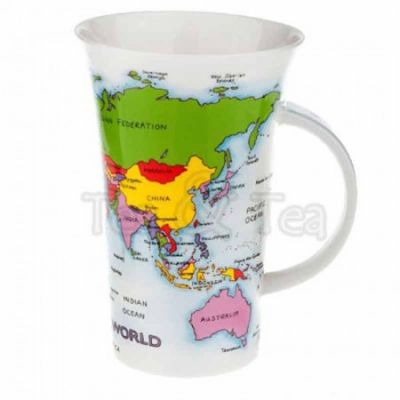 Wyjątkowy model kubka jednej z prestiżowych firm angielskich Dunoon, wykonany z uszlachetnionej mączką kostną porcelany o nowoczesnym, rozszerzanym ku górze kształcie ozdobiony mapą świata z uwzględnieniem państw.